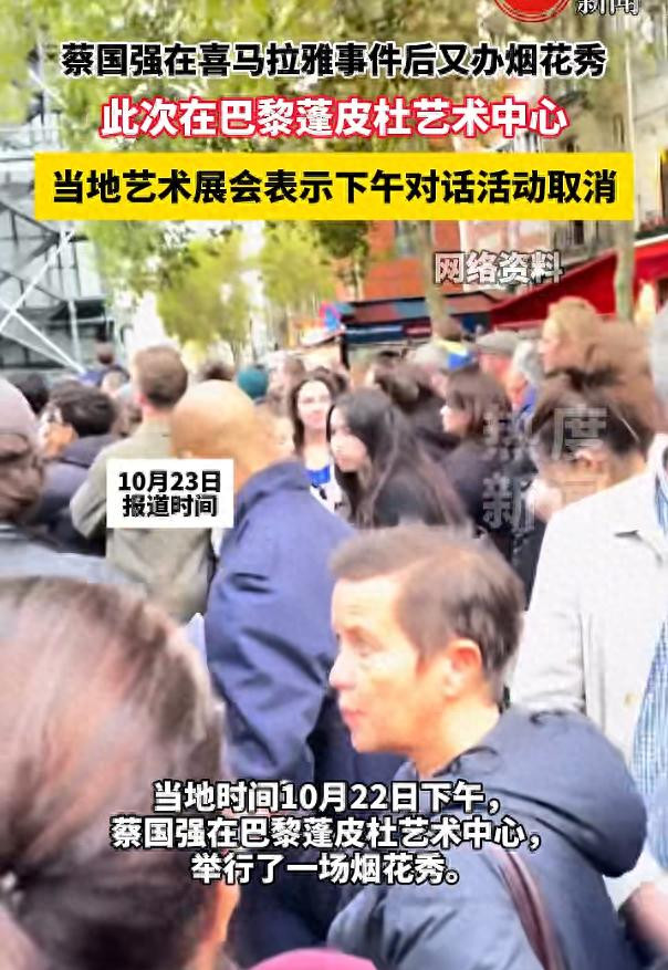 此外,巴黎巴塞尔艺术展会宣布,原定于当地时间10月23日下午在该展会上举办的《激荡新视野:蔡国强和卡地亚基金会》对话活动取消,目前,该活动信息已经从巴塞尔艺术展和卡地亚基金会官网撤下。